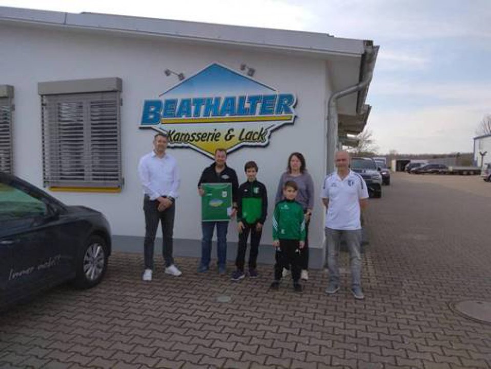 von links nach rechts: 1.Vorstand Kay Rudolf, Firma Beathalter: Marco Beathalter, 2.Vorstand Dietmar Haß, Talentförderung/Sichtung Judith Röderer, 2 Jugendspieler des FV Schutterwald